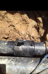 處理方法:焊接時(shí)時(shí)刻觀察電熔焊機(jī)電流變化,發(fā)現(xiàn)電流上升,說(shuō)明焊接區(qū)域銅絲并絲,應(yīng)立即停止焊接,記錄焊接剩余時(shí)間,根據(jù)剩余時(shí)間決定是否降低電壓補(bǔ)焊。特別注意,如果因操作不當(dāng)引起內(nèi)部著火現(xiàn)象,應(yīng)就地取材封堵管材兩頭,使內(nèi)部真空,火自然熄滅。